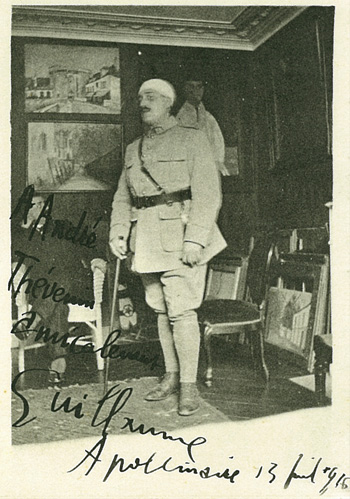 | Other | Nº 277 in D'Atri files as Portrait of painter Kisling, 105 x 74 signed low left - dated 1915 - provenance in Paul Guillaume 1929 ------------------------------------------------------------------------------------------------------------------------------------------------------------------ Signature: ------------------------------------------------------------------------------------------------------------------------------------------------------------------ This painting presents holes in the 4 corners. ------------------------------------------------------------------------------------------------------------------------------------------------------------------ Detail of the ears where the drawing is visible and is painted over the color (on top of the color) ![]() ------------------------------------------------------------------------------------------------------------------------------------------------------------------------------------------- This painting is visible in a photo of Guillaume Apollinaire dated in 1916. In the photo the color of the jacket looks white, not blue as is in this painting, maybe it was later altered by the artist or is there a white jacket version? This photo have 2 copies (probably there are more): 1.- dedicated to André Breton and dated August 1916 ![]() Image source: Sale Andé Breton 2.- dedicated to "André Thevenin amicablement " and dated 13 July 1916 ![]() Image source: Otago University This is the overlay of the painting on the photo: Based on the dates this photo should have been done in the Guillaume gallery while Modigliani was alive and dated the painting as previous to July 1916. ---------------------------------------------------------------------------------------------------------------------------------------------------------------- Photo of Moïse Kisling: ![]() Biography of the portrayed ----------------------------------------------------------------------------------------------------------------------------- Reconstruction of the Guillaume office at the Orangerie Museum, this painting is included: |