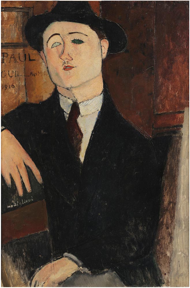 | Other | Nº 289 in D'Atri files - size 80.5 x 54 dated 1916 - provenance in the Guillaume collection ------------------------------------------------------------------------------------------------------------------------------------------------------------------------------------------- Signature: ------------------------------------------------------------------------------------------------------------------------------------------------------------------------------------------- This painting presents holes in 2 corners. ------------------------------------------------------------------------------------------------------------------------------------------------------------------------------------------- Detail of the ears where the drawing is visible and is painted over the color (on top of the color) ![]() ------------------------------------------------------------------------------------------------------------------------------------------------------------------------------------------- Photo of Paul Guillaume: ![]() Biography of the portrayed |