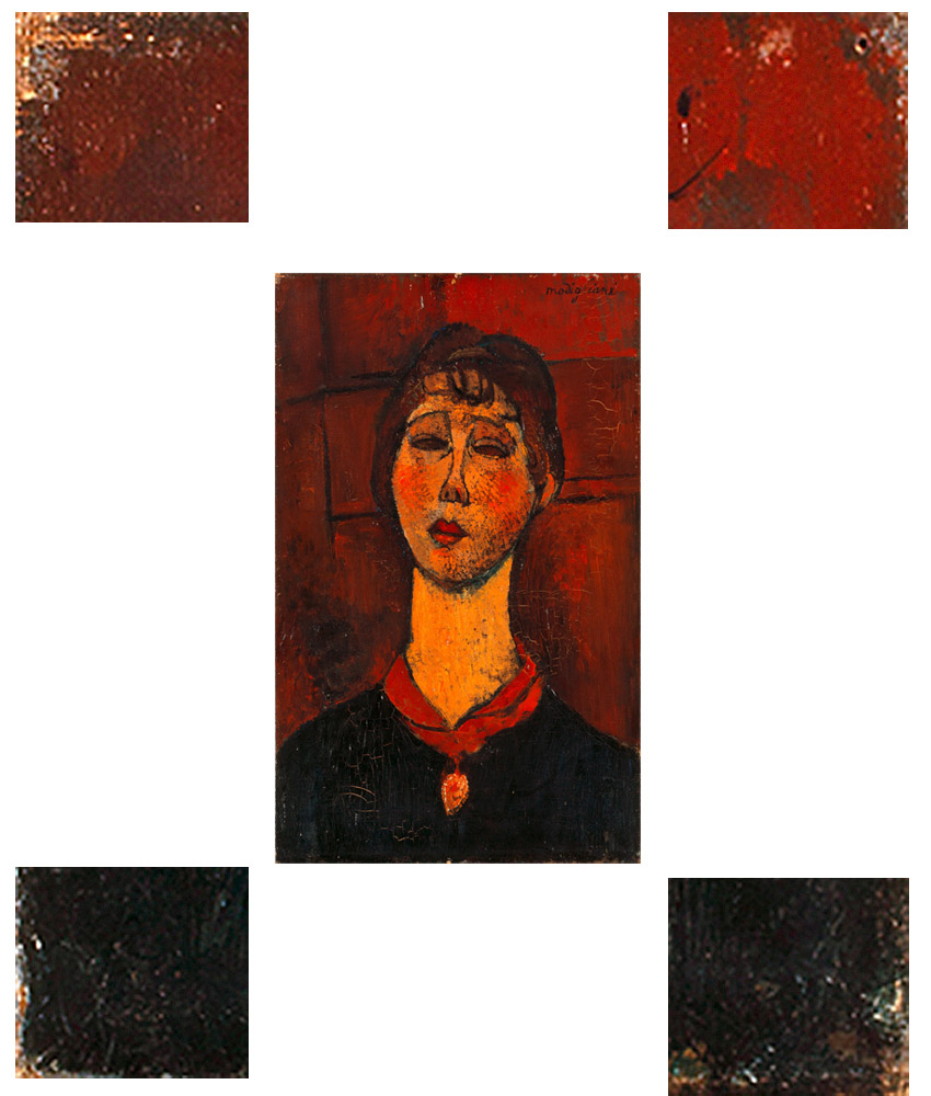 | Other | Nº 73 in D'Atri papers - size 115 x 72 - dated 1920 - provenance in Zborowski ------------------------------------------------------------------------------------------------------------------------------------------------------------------------------------------- Signature: ------------------------------------------------------------------------------------------------------------------------------------------------------------------------------------------- Ceroni in his text mentions that the portrayed was the wife of a famous actor and collector named Dorival (Georges Edouard Lemarchand, 1871-1939) -------------------------------------------------- All the historians reflect the amazing yellows and oranges of the face, this work has a totally undoubted origin, I have read reports with similar colors of works called forgery for bearing exactly the same features. The original colors of the painting are the ones at top image, usually the photographers tend to dilute the aggressive colors with extra light or less contrast. ------------------------------------------------------------------------------------------------------------------------------------------------------------------- Detail of the ear where the drawing is clearly visible and is painted over the color (on top of the color) ![]() ----------------------------------------------------------------------------------------------------------------------------------------------------------------------- Canvas presents holes in the 4 corners, so it must have been painted against a wall or wood instead of in an easel: ![]() ----------------------------------------------------------------------------------------------------------------------------------------------------------------------- Image of the painting framed at Basel Kunstmuseum Actual frame: ![]() Previous frame at Basel Museum: ![]() |