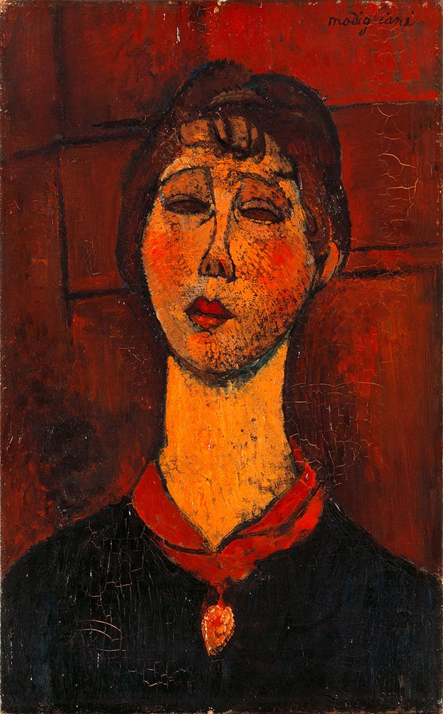 | Bibliography | -?- (Probably Nº 168 in Pfannstiel, size does not match but the rest would be possible, but there is no way to be sure) Lanthemann, Modigliani, catalogue raisonné: sa vie, son oeuvre, son art, G. Condal, Barcelona, 1970, nº 130 Ceroni & Piccioni, Il dipinti di Modigliani, Rizzoli, Milano, 1970 , nº 122 ( wrong measures and location) Lanthemann-Parisot. MODIGLIANI INCONNU: suivi de précisions et documents inédits. Brescia, Shakespeare and Company, 1978, p. 50 Goldwater, Primitivism in Modern Art, Cambridge Mass./London 1986, pp. 125–130. Patani, Catalogo Generale, Leonardo, Milano, 1991-94, nº 125 Decrooq-Restellini, L'Ange au visage grave, Musée du Luxembourg, Paris, 2002 pp. 205-251 Martigny, Fondation Pierre Gianadda, Modigliani et l'Ecole de Paris, June-November 2013, pp. 44-45 In process |
