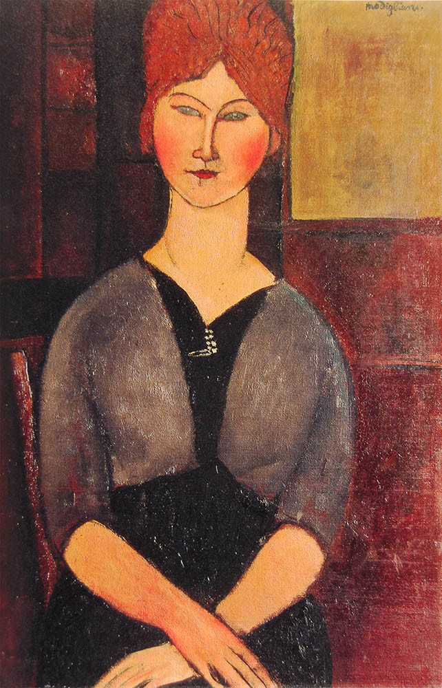 | Exhibitions | -?- Bruxelles, Modigliani: Retrospective Exhibition. Palais des beaux-arts, 1933 - nº 52 Basel, Amedeo Modigliani, Kunsthalle, 1934 - nº 44 Paris, Cent Tableaux de Modigliani, Galerie Charpentier, 1958 - nº 36 (dated 1916 - size in catalogue 92 x 60 ) Tokyo, Modigliani et le primitivisme, The National Art Center, 2008 - n° 32 Osaka, Modigliani et le primitivisme, The National Museum of Art, 2008 - n° 32 South Korea, Amedeo Modigliani and Jeanne Hébuterne, Aram & Harmony Art Museum of Goyang, 2008, curated by Marc Restellini In process |