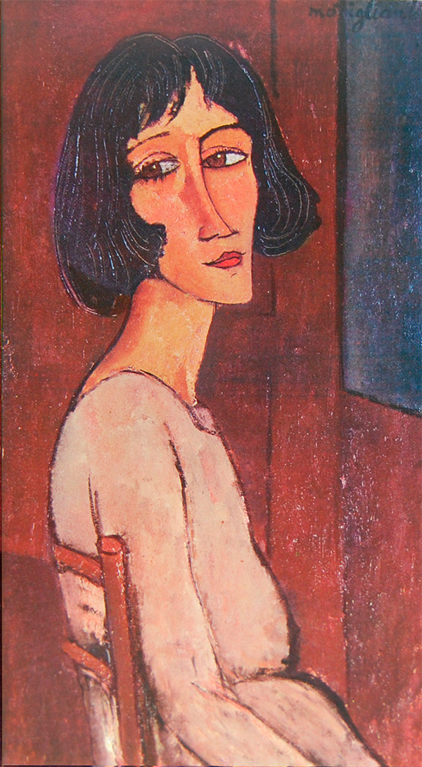 | Bibliography | -?- Pfannstiel, "catalogue presume" Modigliani. L'Art et la Vie. Preface de Louis Latourrettes, Seheur, Paris, 1929, p. 25 Basler, Kunst und Kunstler, Print. Bruno Cassirer, Berlin, October 1929, p. 358 (Illustrated) D'Ancona, 1952, p. 14 Lipchitz, Amedeo Modigliani,H.N. Abrams, New York 1952 - 1953 - 1954, pl. 32 ( size 18 x 20" = 45.7 x 50.8 cm, dated in 1917) Lipchitz, Amedeo Modigliani,Flammarion, Paris1954, pl. 32 ( size 45 x 50 cm, dated in 1917) Pfannstiel, Modigliani et son oeuvre, etude critique et catalogue raisonne, bibliotheque des arts, Paris, 1956 - nº 156 Ceroni, Amedeo Modigliani: Peintre; Suivi des Souvenirs de Lunia Czechowska, Edizioni del Milione, 1958 - nº 76 Werner, Amedeo Modigliani , H. Abrams, New York 1966, p. 76 (dated 1917-18 size 31 1/2 x 17 3/4" = 80 x 45 cm) Lanthemann, Modigliani, catalogue raisonné: sa vie, son oeuvre, son art, G. Condal, Barcelona, 1970 - nº 158 Ceroni & Piccioni, Il dipinti di Modigliani, Rizzoli, Milano, 1970 - nº 130 (dated 1916) Patani, Catalogo Generale, Leonardo, Milano, 1991-94 Decrooq-Restellini, L'Ange au visage grave, Musée du Luxembourg, Paris, 2002, mention in pp. 246-247 Parisot, Modigliani la vita le opere, Carte Segrete / Musée du Montparnase, 2006, mention in text nº 27 Soto Caba, Modigliani, The timeless face, Libsa, Madrid, 2007 In process |