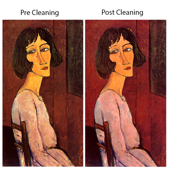 | Other | D´Atri files as nº 297 dated in 1917, wrong size 73 x 45 (possible origin of the mistake in Pfannstiel duplicating the number (154 - 155) and located in the Bing Gallery coll. in 1929 while the other is at Netter Collection. ------------------------------------------------------------------------------------------------------------------------------------------------------------------------------------------- Signature of the painting: ----------------------------------------------------------------------------------------------------------------------------------------------------------------------------------- Pre and post cleaning: ![]() In Various publications the window looks blue, I´m not sure if by the effect of the photography saturation or the painting has oxidated this color: ------------------------------------------------------------------------------------------------------------------------------------------------------------------------------------------ Detail of the hair done with the stick of the brush in sculptural way: |