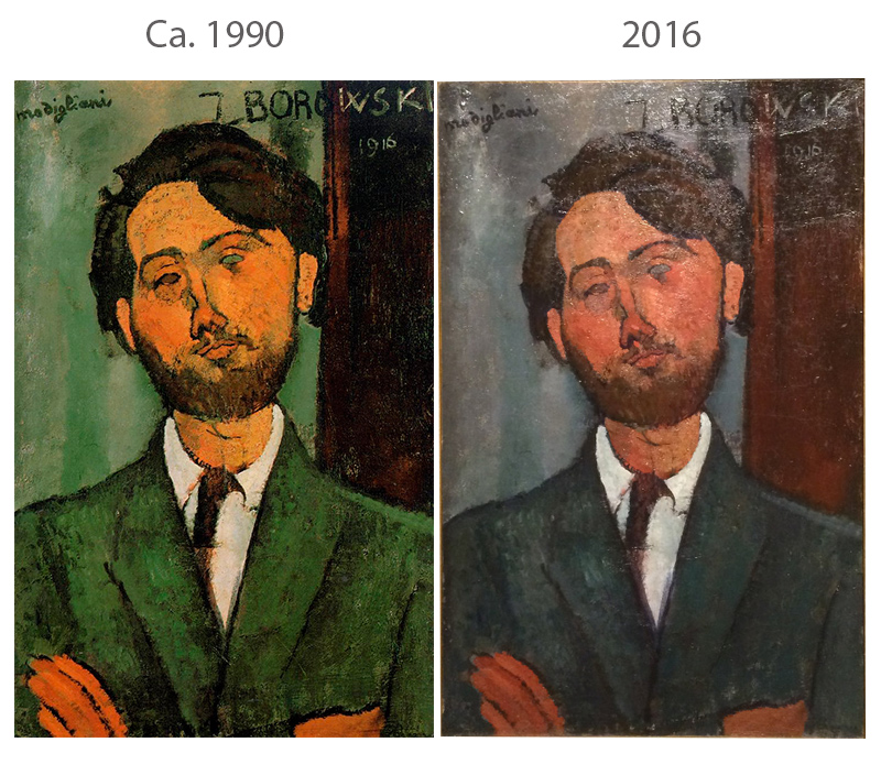 | Other | Not In D' Atri papers ------------------------------------------------------------------------------------------------------------------------------------------------------------------- All the experts agree this is the first painting of Zborowski. ------------------------------------------------------------------------------------------------------------------------------------------------------------------------------------------- This painting presents holes in the 4 corners (2 of them covered by restoration) ------------------------------------------------------------------------------------------------------------------------------------------------------------------------------------------- Signature: ( possible double signature?) ------------------------------------------------------------------------------------------------------------------------------------------------------------------------------------------- Detail of the ears where the drawing is clearly visible and is painted over the color (on top of the color) ![]() ------------------------------------------------------------------------------------------------------------------------------------------------------------------------------------------- Changes of the painting once the oxidated varnish layer was cleaned: ------------------------------------------------------------------------------------------------------------------------------------------------------------------- Image of the painting framed at the Budapest, Modigliani, Hungarian National Gallery, 2016 |