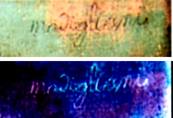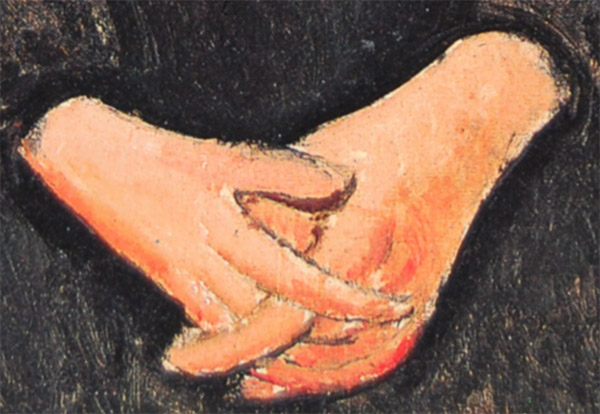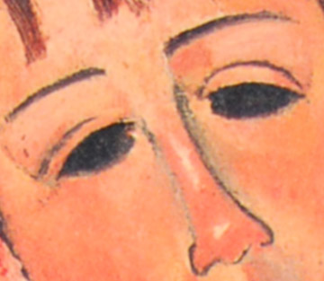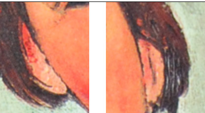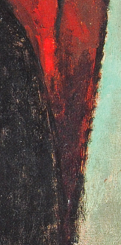 | Other | Nº 152 in D'Atri papers as Mademoiselle Huguette (fillete sur une chaise) - size 91.5 x 60.5 painted in Nice 1918 provenance Reid & Lefevre > Berg 1928 ------------------------------------------------------------------------------------------------------------------------------------------------------------------------------------------ Detail of signature in visible normal light & negative: ![]() ------------------------------------------------------------------------------------------------------------------------------------------------------------------------------------------- The eyes / eyebrows: ![]() ------------------------------------------------------------------------------------------------------------------------------------------------------------------------------------------ Detail of the ears where the drawing with colors and black detail is visible and is painted over the color (on top of the color) very strongly applied. ![]() Detail of the hands: ![]() ------------------------------------------------------------------------------------------------------------------------------------------------------------------------------------------- Detail of the style used to construct the chair line: ![]() |