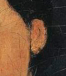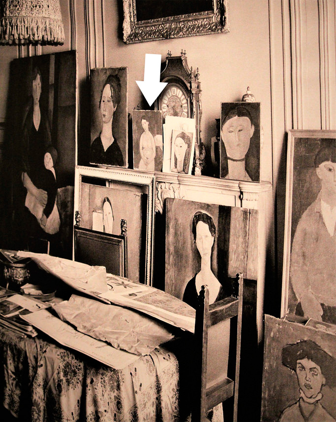 | Other | There is a copy or sketch of this painting made in cardboard from a private collection in France that was discarded as an original during the 1981 study or the RNM but should require a more in deep study. it was discarded because of the lack of quality of the visual aspect but all the other aspects were perfect (could it be a quick sketch unfinished or simply a bad day at work?) The provenance of this sketch can be tracked to Dutilleul Collection as it is seen in a photo from Dutilleul paintings. See: Musée de Art Moderne de la Ville de Paris, Modigliani exib. cat., 1981, p. 45 Image of Dutilleul treasures where the sketch can be clearly seen: ------------------------------------------------------------------------------------------------------------------------------------------------------------------- Detail of the ear where the drawing is visible and is painted over the color (on top of the color) ![]() | ||||||||||||||||