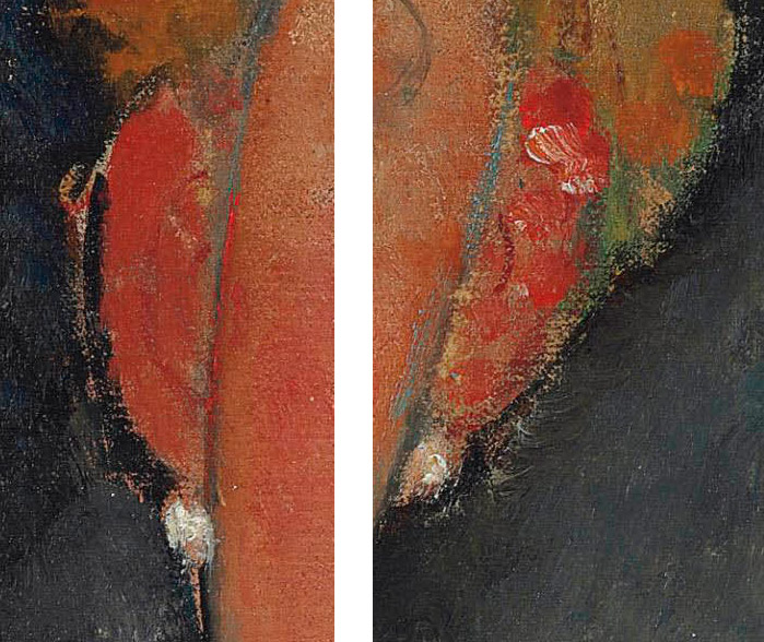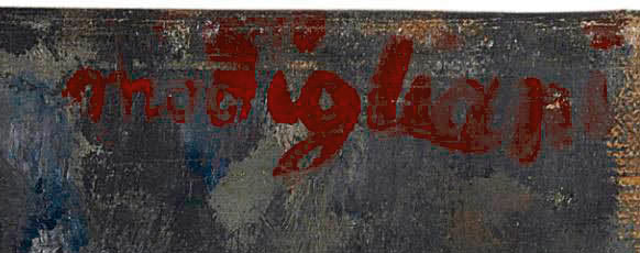 | Other | Not in D' Atri papers ------------------------------------------------------------------------------------------------------------------------------------------------------------------------------------------ This painting presents holes in the 2 corners, others may be covered by restoration? ------------------------------------------------------------------------------------------------------------------------------------------------------------------------------------------ The signature of the painting is very special: Visible light. Red extraction of the visible signature --------------------------------------------------------------------------------------------------------------------------------------------------------------------------------------------------- The painting framed in an a 17th century Italian cassetta frame: ![]() ------------------------------------------------------------------------------------------------------------------------------------------------------------------- Detail of the ear where the drawing is clearly visible and is painted over the color (on top of the color) ![]() ------------------------------------------------------------------------------------------------------------------------------------------------------------------------------------------- | ||||||||||||||||