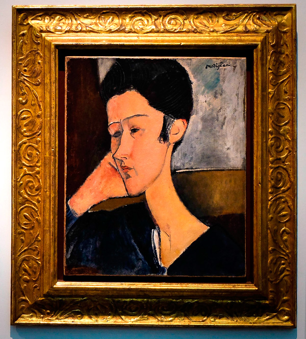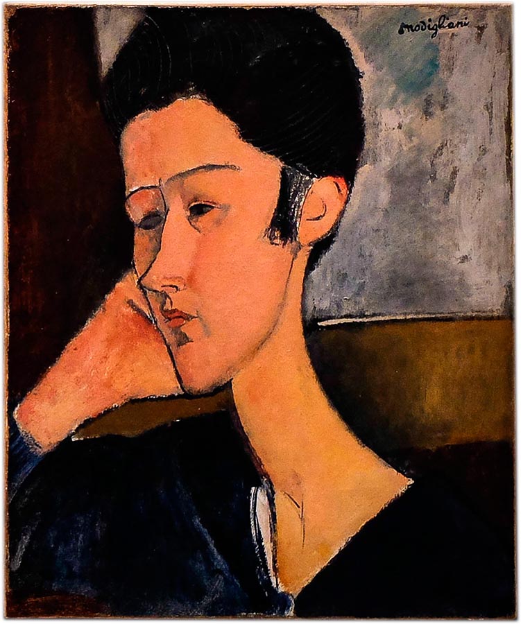 | Other | Not in D' Atri papers ------------------------------------------------------------------------------------------------------------------------------------------------------------------- Possibly Pfannstiel - nº 97 Portrait de femme size 46 x 38 end of 1917 . catalogue presume p. 15 and in the Bernheim Jeune Collection, Paris ? Another option nº 126 - 45 x 39 - sold Drouot 18/June 1925 . presume p. 19 ------------------------------------------------------------------------------------------------------------------------------------------------------------------------------------------- This painting presents holes in 2 corners of the canvas, they rest probably have been covered by restoration? ------------------------------------------------------------------------------------------------------------------------------------------------------------------------------------------- The painting framed at Helsinki, Modigliani, Ateneum , 2016-2017: ![]() ------------------------------------------------------------------------------------------------------------------------------------------------------------------- Detail of the ears where the drawing is clearly visible and is painted over the color (on top of the color) ![]() ------------------------------------------------------------------------------------------------------------------------------------------------------------------------------------------- | ||||||||||||||||