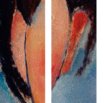 | Other | Nº 55 in D' Atri papers as "petite fille debout en robe bleu" - oil on canvas - size 54.5 x 45.5 - dated 1918 -a large text admiring the painting - Provenance in Netter (in pencil with question marks) ------------------------------------------------------------------------------------------------------------------------------------------------------------------------------------------- Detail of signature in visible normal light: As can be seen in regular inspection, the first body of the "m" is missing and it say "r"odigliani? Infra red: As can be seen in regular inspection, the first body of the "m" is missing and it say "r"odigliani? ------------------------------------------------------------------------------------------------------------------------------------------------------------------------------------------- Detail of the ears where the drawing is clearly visible and is painted over the color (on top of the color) ![]() ------------------------------------------------------------------------------------------------------------------------------------------------------------------------------------------- The painting framed at St. Petersburg, Modigliani, Soutine and other legends of Montparnasse (the Netter Collection), Curated by Marc Restellini, Fabergé Museum, 2017-18 ![]() ------------------------------------------------------------------------------------------------------------------------------------------------------------------------------------------- The painting a t the Venezia, Mostra retrospettiva di Modigliani – Curated by Lionello Venturi - Biennale di Venezia , Sala XII degli Appels d'Italie, 1930 - nº 10 - as Girl standing | ||||||||||||||||