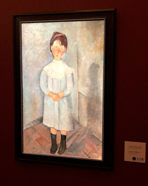 | Exhibitions | -?- ? Venezia, Mostra retrospettiva di Modigliani – Curated by Lionello Venturi - Biennale di Venezia , Sala XII degli Appels d'Italie, 1930 - nº 10 Paris, Modigliani retrospective, Marcel Bernheim (Galerie Bernheim-Jeune), 1931 - nº 29 - dated 1919 Brussels, Modigliani: Retrospective Exhibition. Palais des beaux-arts, 1933 - nº 55 Basel, Amedeo Modigliani, Kunsthalle, 1934 - nº 47 Paris, Cent Tableaux de Modigliani, Galerie Charpentier, 1958 - nº 62 as Little girl in blue, Private Collection Paris - 117 x 72.5 cm Marseille, Modigliani, Musée Cantini, 1958 - nº 32 ? Paris, Modigliani, Musée de Art Moderne de la Ville de Paris, 1981 - nº 60 Paris, La Collection Jonas Netter - Modigliani, Soutine et l'Aventure de Montparnasse, Pinacotheque de Paris, 2012 Milano, La Collection Jonas Netter, Palazzo Reale, 2013 St. Petersburg, Modigliani, Soutine and other legends of Montparnasse (the Netter Collection), Curated by Marc Restellini, Fabergé Museum, 2017-18 Livorno, La Collection Jonas Netter - Modigliani, Soutine et l'Aventure de Montparnasse, Museo della Città, 2019-2020 In process |