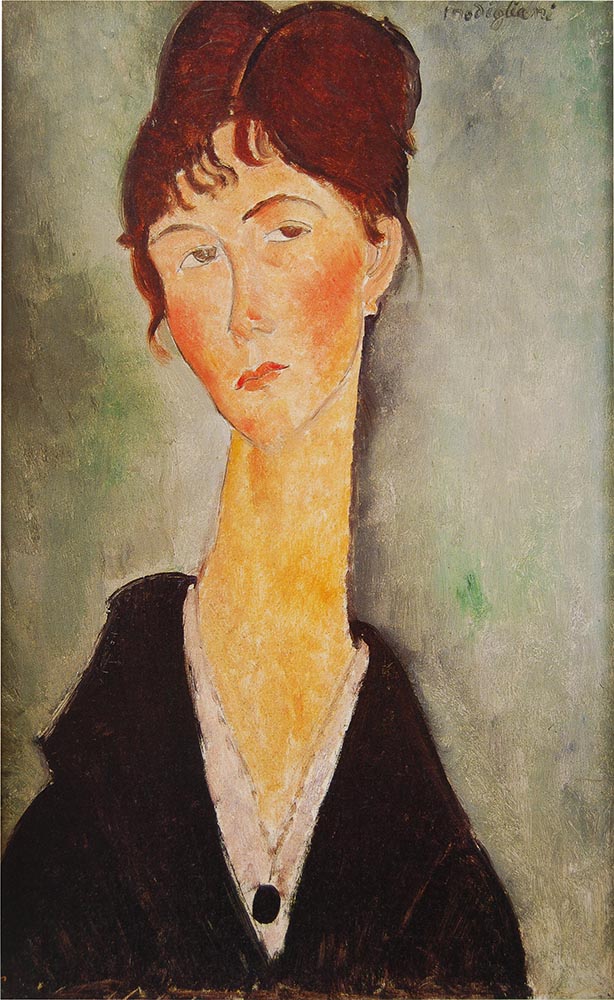 | Bibliography | -?- ? Franchi, Modigliani, Arnaud, Firenze, 1946, pl. 26 Pfannstiel, Modigliani et son oeuvre, etude critique et catalogue raisonne, bibliotheque des arts, Paris, 1956 - nº 320 - dated 1917-1918 as Woman face Lanthemann, Modigliani, catalogue raisonné: sa vie, son oeuvre, son art, G. Condal, Barcelona, 1970 - nº 302 - dated 1918 Ceroni & Piccioni, Il dipinti di Modigliani, Rizzoli, Milano, 1970 - nº 238 - dated 1918 Ceroni & Cachin, Tout l'oeuvre peint de Modigliani, Paris, 1972 - nº 238 Patani, Catalogo Generale, Leonardo, Milano, 1991-94 - nº 250 - dated 1918 Fraquelli, Modigliani and His Models. Exh. cat., Royal Academy of Arts. London, 2006, p. 132, nº 45 Decrooq-Restellini, L'Ange au visage grave, Palazzo Reale, MIlano, 2003, pp. 280-281 Soto Caba, Modigliani, The timeless face, Libsa, Madrid, 2007 In process |