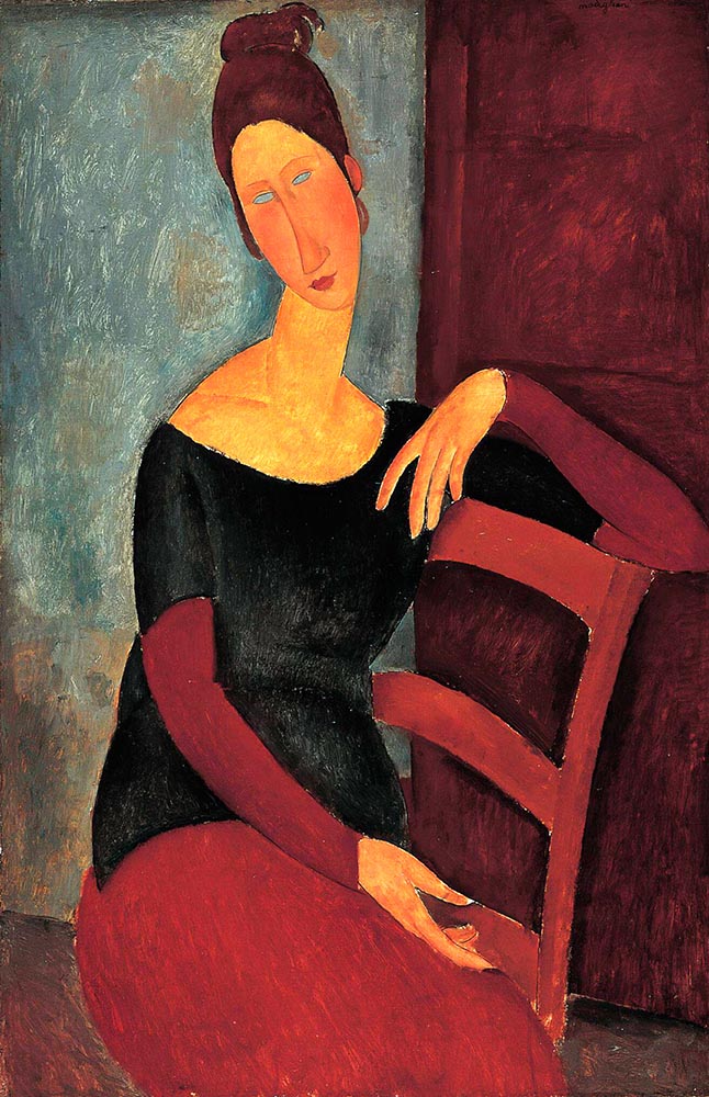| Title | Jeanne seated with the arm resting on the back of the chair- Jeanne Hébuterne seated- Jeanne seated - The artist's wife - Jeanne H'ebuterne - The red dress - Thew wife of the Artist | ||||||||||||||||