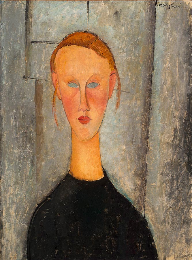 | Bibliography | -?- Basler, Modigliani. Editions G. Cres, Paris, 1931 - nº 23 title La Jolie ecolière Lanthemann, Modigliani, catalogue raisonné: sa vie, son oeuvre, son art, G. Condal, Barcelona, 1970 - nº 272 - title Young woman with blue eyes - dated 1918 Musée de Art Moderne de la Ville de Paris, Modigliani exib. cat., 1981 - nº 68 Patani, Catalogo Generale, Leonardo, Milano, 1991-94 - nº 240 - title Young woman with blue eyes - dated 1918 Wayne, Modigliani & the Artists of Montparnasse, Abrams-Albright-knox gallery, New York, 2002, p. 96 - nº 29 - title Girl with blue eyes - dated 1917 (mention to Guillaume provenance) Fraquelli, Modigliani, Fort Worth and Paris, in Burlington Magazine, nº 145, 2003, pp. 254-255 In process |