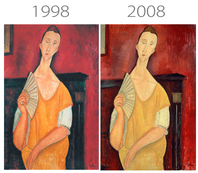 | Other | Nº 57 in D'Atri papers al Portrait of Lunia Tchechowska ( femme a l' eventail) - size 100 x 65 dated 1919 Paris - Provenance Netter 1928 > Bignou 1929 > A. Reid & Lefevre 1933 ------------------------------------------------------------------------------------------------------------------------------------------------------------------------------------------- Signature of the painting: ------------------------------------------------------------------------------------------------------------------------------------------------------------------------------------------- Detail of the ear where the drawing is clearly visible and is painted in color ![]() ------------------------------------------------------------------------------------------------------------------------------------------------------------------------------------------- Changes visible in the painting for cleaning or restoration: ![]() ------------------------------------------------------------------------------------------------------------------------------------------------------------------------------------------- The painting framed at Moscow, Meeting Modigliani, Pushkin State Museum of Fine Arts, 2007 |