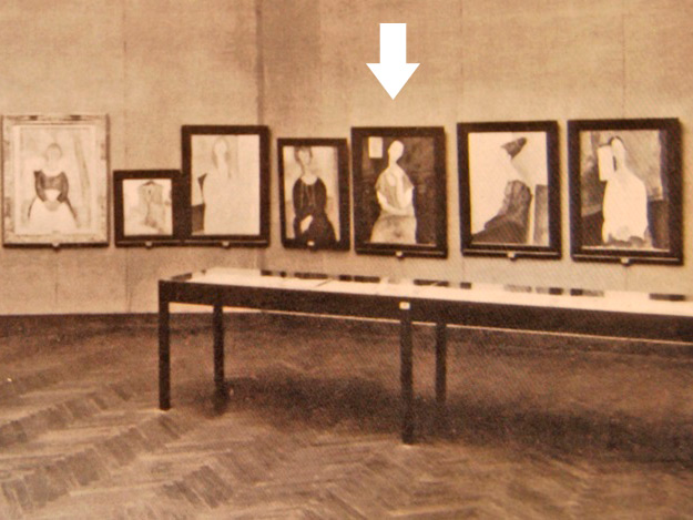 | Other | Not in D'Atri papers? ------------------------------------------------------------------------------------------------------------------------------------------------------------------------------------------- Note: Parisot say it is Pfannstiel nº 113 dated in 1916 but it's impossible. Patani say it is nº 293 but that number is of another painting (the Heinz Lunia sold in 2019) Pfannstiel gives to Lunia with the fan 2 numbers (I mean they are repeated paintings): nº 317 (mandatory since he gives the numbers of Basel/Brussels exhibition and they match far from any doubt) nº 330 (mandatory because he gives the correct provenance to Lunia with the fan and they match far from any doubt) ------------------------------------------------------------------------------------------------------------------------------------------------------------------------------------------- I have never seen this painting live or in a color reproduction. ------------------------------------------------------------------------------------------------------------------------------------------------------------------------------------------- The painting framed in Venezia, Mostra retrospettiva di Modigliani – Curated by Lionello Venturi - Biennale di Venezia , Sala XII degli Appels d'Italie, 1930 |