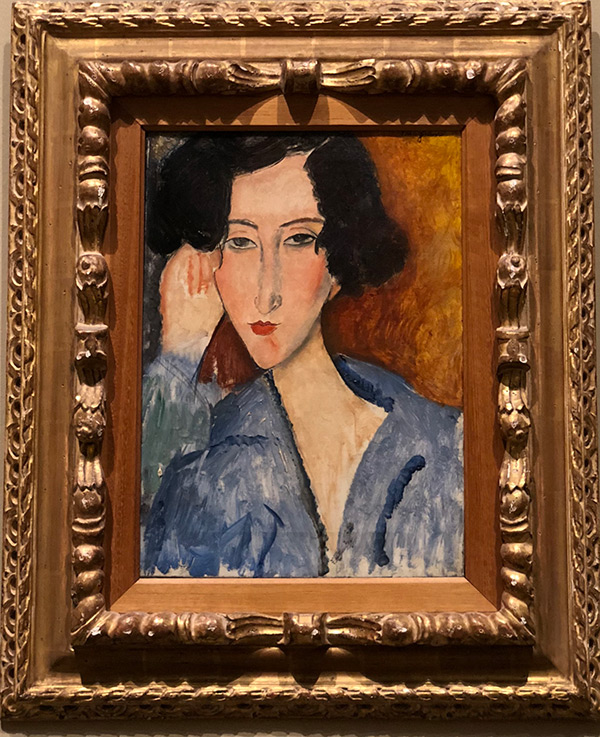 | Exhibitions | -?- ? Tokyo, 1929 Nagasaky, 1929 Paris, Modigliani retrospective, Marcel Bernheim (Galerie Bernheim-Jeune), 1931 Paris, Cent Tableaux de Modigliani, Galerie Charpentier, 1958 - nº 80 - dated in 1918 Roma, Modigliani, Galleria Nazionale d'Arte Moderna, 1959 - nº 47 Frankfurt, Amedeo Modigliani, Steinernes Haus, 1963 - nº 29 Paris, Modigliani, Musée de Art Moderne de la Ville de Paris, 1981 - nº 76 London, Modigliani, Tate Modern, 2017-2018 In process |