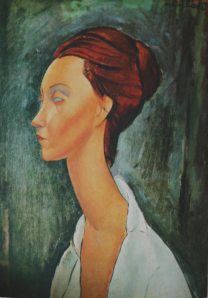 | Other | Nº 224 in D'Atri papers as Portrait of Mme. Czechowska ( teté de profil ) - size 56 x 39 - Provenance: Netter Collection acquired from Zborowski in 1929 ------------------------------------------------------------------------------------------------------------------------------------------------------------------------------------------ Probably this other painting may be a sketch for the larger composition? - ------------------------------------------------------------------------------------------------------------------------------------------------------------------------------------------ Detail of signature: ![]() Detail of signature extraction to see it more clear: ![]() ------------------------------------------------------------------------------------------------------------------------------------------------------------------------------------------ Infra red image of the painting showing the drawing lines of the body and neck: ![]() ------------------------------------------------------------------------------------------------------------------------------------------------------------------------------------------ The eyes: ![]() ------------------------------------------------------------------------------------------------------------------------------------------------------------------------------------------ Detail of the ear where the drawing in orange line is clearly visible and is detailed in color ![]() ------------------------------------------------------------------------------------------------------------------------------------------------------------------------------------------ The painting at the Venezia, Mostra retrospettiva di Modigliani – Curated by Lionello Venturi - Biennale di Venezia , Sala XII degli Appels d'Italie, 1930 - nº 5 ![]() |