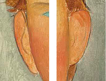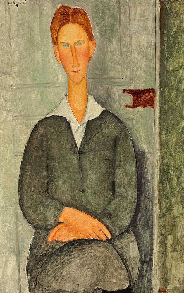| Other | Nº 74 in D'Atri papers as Young red haired man- dated 1919 and with the text 1916?- Provenance: Coe Collection in 1931 ------------------------------------------------------------------------------------------------------------------------------------------------------------------------------------------ Probably this other painting may be a sketch for the larger composition or copies made by the author as some experts suggest? - - ![]() ------------------------------------------------------------------------------------------------------------------------------------------------------------------------------------------ Detail of signature: ![]() ------------------------------------------------------------------------------------------------------------------------------------------------------------------------------------------ The Painting framed for auction: ![]() ------------------------------------------------------------------------------------------------------------------------------------------------------------------------------------------ The painting framed at the Kimmel residence in 2005: ------------------------------------------------------------------------------------------------------------------------------------------------------------------------------------------ Infra red image of the painting showing the drawing lines of the body, face and main details: ![]() Detail of the infrared showing the ears sketch: Detail of the infrared showing the mouth and moustache sketch: Detail of the infrared showing the jacket sketch: ------------------------------------------------------------------------------------------------------------------------------------------------------------------------------------------ Detail of the ears where the drawing in black line is clearly visible and is detailed in color ![]() ------------------------------------------------------------------------------------------------------------------------------------------------------------------------------------------ NOTE: Marc Restellini has suggested that he might be a member of the family of Dr. Raymond-Jacques Sabouraud (1864-1938), Modigliani's first known landlord in the south of France and the earliest recorded owner of the bust-length portrait of the same sitter, former in the Guggenheim collection. Sabouraud was a renowned dermatologist at the Hôpital Saint-Louis in Paris, as well as an accomplished painter, sculptor, and musician. Guggenheim Version (dated 1919): ----------------------------------------------Young man (dated 1919) -------------------------------------Private Collection Version (dated 1919) - - ![]() He owned at least nine canvases by Modigliani during his lifetime and was a close friend of Odilon Redon, who painted his portrait. Could the present portrait perhaps depict Sabouraud's son Emile, who was nineteen years old in 1919? Emile--who would go on to a long, successful career as an artist--had recently begun to study with Othon Friesz at the Académie de la Grande Chaumière in Paris and would no doubt have jumped at the chance to sit for the notorious Modigliani, who since the succès de scandale at Weill's could claim the virtually unique distinction among his colleagues of having had his work banned by the police. Another possibility is that Jeune homme roux assis depicts one of the four sons of Georges Menier, whose family owned the famous Chocolat Menier, the leading maker and distributor of quality packaged chocolates since the mid-1850s. Georges Menier ? (dated 1918): The wealthy and worldly Menier purchased one of Modigliani's scandalous nudes early in 1918 and shortly thereafter (probably before the artist left Paris in April) commissioned Modigliani to paint a portrait of his wife Simonne, wearing an elegant black dress and a favorite emerald necklace, with her hair bobbed in the newly chic manner (Ceroni 1970, no. 233). Mme. Menier (dated 1918): Madame Menier's coloring is strikingly similar to that of the present sitter, and the overall tonality is closely comparable in the two portraits as well. The Menier family appears to have visited the Riviera during the summer of 1918 and to have resumed contact with Modigliani and Zborowski. A portrait from this time of a cherubic, strawberry blond boy dressed in short pants--identified in Ceroni and Patani simply as Ragazzo biondo--once belonged to Georges Menier and may depict his second oldest son Claude, who would have been twelve at the time (Ceroni, no. 255; fig. 6). Blond boy? (dated 1918): ![]() Could the present portrait be the eldest Menier boy Antoine, not an impish and rumpled pre-adolescent like his brother Claude but a dapper young man of fifteen, a student at the esteemed Lycée Condorcet in Paris and eventual heir to the family company? |