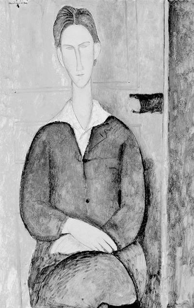 | Other | Nº 39 in D'Atri papers as the student- dated 1917 and with the text 1916?- Provenance: Sabouraud, Paris ------------------------------------------------------------------------------------------------------------------------------------------------------------------------------------------ Probably this other painting may be a sketch for the larger composition or copies made by the author as some experts suggest? - - ![]() ------------------------------------------------------------------------------------------------------------------------------------------------------------------------------------------ Detail of signature: ![]() ------------------------------------------------------------------------------------------------------------------------------------------------------------------------------------------ Infra red image of the painting showing the drawing lines and main details next to the IR of the bigger composition: - Detail of the infrared showing the mouth and mustache sketch next to the IR of the bigger composition: - Detail of the infrared showing the jacket sketch next to the IR of the bigger composition: - ------------------------------------------------------------------------------------------------------------------------------------------------------------------------------------------ Detail of the ears where the drawing in black line is clearly visible and is detailed in color ![]() ------------------------------------------------------------------------------------------------------------------------------------------------------------------------------------------ NOTE: Marc Restellini has suggested that he might be a member of the family of Dr. Raymond-Jacques Sabouraud (1864-1938), Modigliani's first known landlord in the south of France and the earliest recorded owner of the bust-length portrait of the same sitter former in the Guggenheim collection. Sabouraud was a renowned dermatologist at the Hôpital Saint-Louis in Paris, as well as an accomplished painter, sculptor, and musician. Guggenheim Version (dated 1919): ----------------------------------------------Young man (dated 1919) -------------------------------------Private Collection Version (dated 1919) - - ![]() He owned at least nine canvases by Modigliani during his lifetime and was a close friend of Odilon Redon, who painted his portrait. Could the present portrait perhaps depict Sabouraud's son Emile, who was nineteen years old in 1919? Emile--who would go on to a long, successful career as an artist--had recently begun to study with Othon Friesz at the Académie de la Grande Chaumière in Paris and would no doubt have jumped at the chance to sit for the notorious Modigliani, who since the succès de scandale at Weill's could claim the virtually unique distinction among his colleagues of having had his work banned by the police. Another possibility is that Jeune homme roux assis depicts one of the four sons of Georges Menier, whose family owned the famous Chocolat Menier, the leading maker and distributor of quality packaged chocolates since the mid-1850s. Georges Menier ? (dated 1918): The wealthy and worldly Menier purchased one of Modigliani's scandalous nudes early in 1918 and shortly thereafter (probably before the artist left Paris in April) commissioned Modigliani to paint a portrait of his wife Simonne, wearing an elegant black dress and a favorite emerald necklace, with her hair bobbed in the newly chic manner (Ceroni 1970, no. 233). Mme. Menier (dated 1918): Madame Menier's coloring is strikingly similar to that of the present sitter, and the overall tonality is closely comparable in the two portraits as well. The Menier family appears to have visited the Riviera during the summer of 1918 and to have resumed contact with Modigliani and Zborowski. A portrait from this time of a cherubic, strawberry blond boy dressed in short pants--identified in Ceroni and Patani simply as Ragazzo biondo --once belonged to Georges Menier and may depict his second oldest son Claude, who would have been twelve at the time (Ceroni, no. 255; fig. 6). Blond boy? (dated 1918): ![]() Could the present portrait be the eldest Menier boy Antoine, not an impish and rumpled pre-adolescent like his brother Claude but a dapper young man of fifteen, a student at the esteemed Lycée Condorcet in Paris and eventual heir to the family company? |