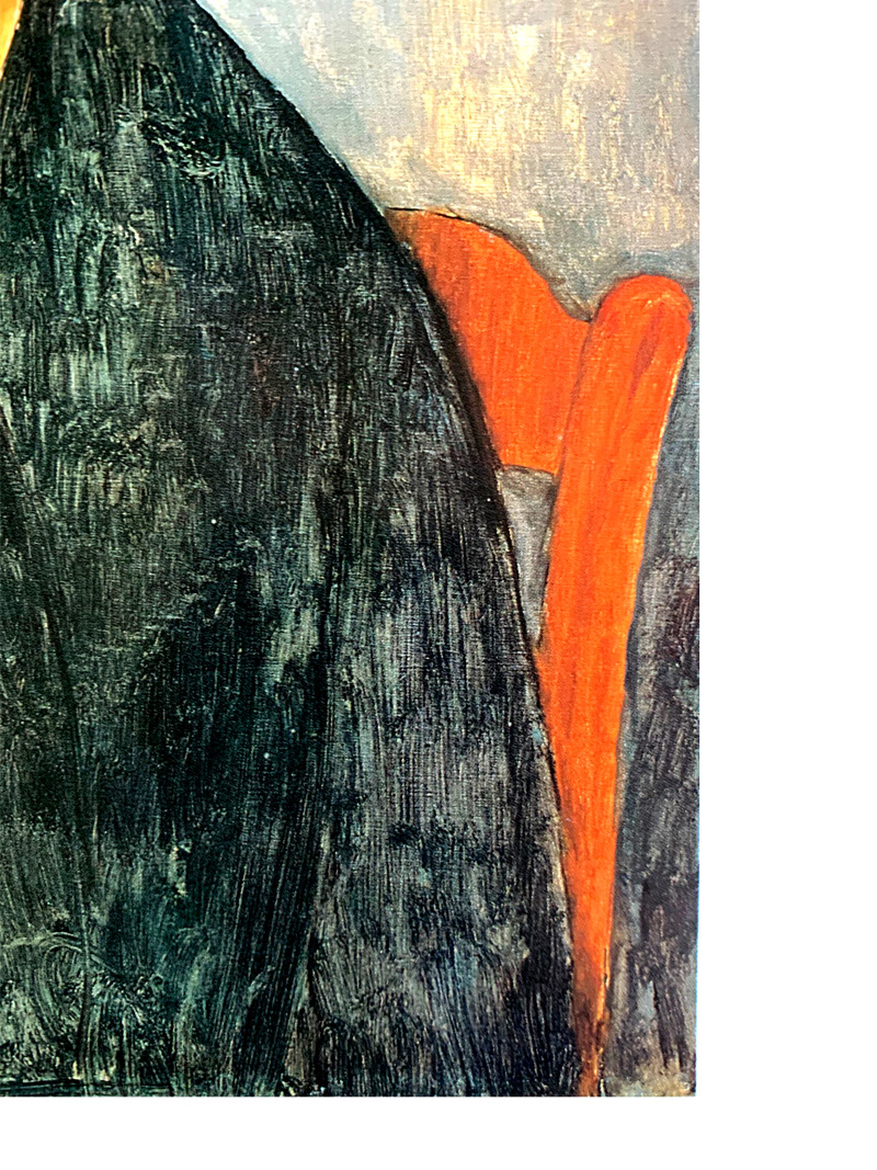 | Other | Not in D'Atri papers ------------------------------------------------------------------------------------------------------------------------------------------------------------------------------------------ Restellini mentions there is a smaller version of the same painting size 62 x 45, in the Guillaume files that is actually lost But he forgets to mention there is another painting recorded in Pfannstiel as nº 193 with the same sitter / titled young woman on blue background / size 63 x 50 dated in 1917 published in page 32 of the 1929 catalogue presume with a provenance in Zborowski > Guillaume: = Base on the size, and subject it could also be perfectly nº 203 in Pfannstiel 1954 catalogue but then it will be in presume page 33 not in 35 as Restellini informs. ------------------------------------------------------------------------------------------------------------------------------------------------------------------------------------------ Detail of the ear where the drawing in orange is clearly visible and is detailed in color ![]() ----------------------------------------------------------------------------------------------------------------------------------------------------------------------------------------- Detail of possible area of the lost signature?: ![]() If an infrared image shows traces of the signature then it can be nº 203 in Pfannstiel and all the provenance given by Restellini must be put in doubt? ------------------------------------------------------------------------------------------------------------------------------------------------------------------------------------------ Detail of the chair that can be seen in many other similar paintings, in a second stage I will enter in this matter: ![]() |
