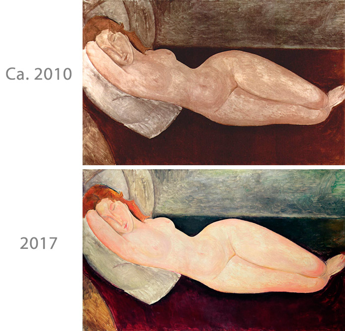 | Bibliography | -?- ?? Ceroni & Piccioni, Il dipinti di Modigliani, Rizzoli, Milano, 1970 - nº 323 - dated 1919 - titled "Lying nude with right arm under the head" - size 116 x 73 cm Ceroni & Cachin, Tout l'oeuvre peint de Modigliani, Paris, 1972 - nº 323 - dated 1919 - titled "Lying nude with right arm under the head" - size 116 x 73 cm Decrooq-Restellini, L'Ange au visage grave, Musée du Luxembourg, Paris, 2002, nº 101, p. 382, 385 Soto Caba, Modigliani, The timeless face, Libsa, Madrid, 2007 Restellini, Le silence éternel, Pinacotheque de Paris, 2008, pp. 164-165 Ireson, Fraquelli, Modigliani, London, Tate Modern, Skira Rizzoli, London, 2017, p. 147 In process |