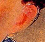 | Other | Nº 322 in D'Atri papers - wrong size 92 x 60 -- dated 1919 - Paris - provenance in Zborowski > Netter > Gualino ------------------------------------------------------------------------------------------------------------------------------------------------------------------------------------------- Signature of the painting: ------------------------------------------------------------------------------------------------------------------------------------------------------------------------------------------- Detail of the ear where the drawing is clearly visible and is painted over the color: ![]() ------------------------------------------------------------------------------------------------------------------------------------------------------------------------------------------- This painting was part of the Modigliani technical research study in 2018 Extract from: The Modigliani technical research study "Modigliani’s late portraits" Bezur, Campos, Centeno, Duvernois, Josenhans, Londero, Gonçalves, Rizzuto, Schwarz Burlington Magazine CLX - May 2018, pp. 400-4007 ------------------------------------ Extract page 404: infra-red examination revealed the presence of under drawing in charcoal with diluted black outlines; colors were applied loosely and in thin transparent layers within these lines; and finally outlines were reinforced with a very thin brush ... With a limited yet economical palette, the use of transparent, thin layers and a virtuoso use of the black line... In this painting the identification of the pigments is: 1.- Chrome yellow 2.- Lead and Zinc white 3.- Vermilion 4.- Ochre 5.- Zinc Yellow 6.- Bone black or ivory black 7.- Possible use of Tempera 8.- No Blue detected (probably organic source) General Museum technical studies have reached the conclusion that is a very short palette, a simple range made with pre industrial oils (non artisan, but small scale industrial oils). in the background preparation: 1.- Lead white |