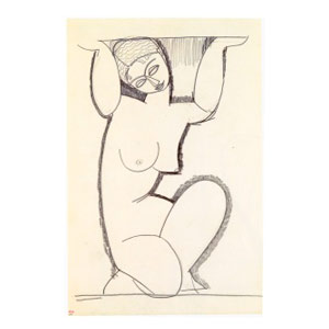 Caryatid Kneeling on a Plinth with 3 Candles |