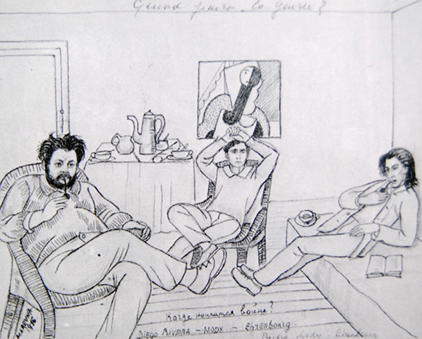 The three paintings of Diego Rivera by Modigliani:of the painting framed at the museum:![]() In the study of the Musée d'Art Moderne de la Ville de Paris, x-ray showed a perfect match and concordance with other original works by Modigliani, the unfinished aspect is probably what makes it look so strange in compare with the other 2. The fact that is painted in a raw canvas with a minimum preparation also adds more difference. Xray and Pigments are absolutely normal in comparison to other undoubted works. Provenance is in Zborowski ( but don't know what is the proof??) Sketch for the other two painting actually at Chicago Art Institute: ![]() Diego Rivera, 1915 Pen and brown and black ink, over graphite on tan wove paper, laid down on buff wove card - 266 x 207 mm Signed recto, along bottom, in pen and brown ink: "Modigliani"; inscribed along top left, in pen and brown ink: "Diego Rivera" Restricted gift of Mr. and Mrs. Wesley M. Dixon, Jr., 1967.35. ---------------------------------------------------------------------------- Drawing by Marevna dated in 1916 of Diego, Modigliani and Ehrenburg at the studio of Diego Rivera in 26 rue du depart, in Montparnasse Coll. Moody ----------------------------------------------------------------------------- MASP files have a letter by Diego Rivera itself saying the next lines: Mexico, 2nd September 1953 Mr. P. M. Bardi Art Museum Sao Paolo, Brazil. The photo you sent me is the original oil painting by Modigliani, my portrait for which I posed in my studio where he worked frequently at 26 rue du depart, in Montparnasse next to the railway station. It was painted in the year of 1916. Sincerely Diego Rivera ----------------------------------------------------------------------------- The Sketch, the opinion of Rivera in the letter at MASP dating the other portrait in 1916 and the drawing by Marevna all dated in 1915-16 should make reconsider the dating of the portraits by Diego and moving them to 1915- 1916 changing all the actual configuration we have in Modigliani's oeuvre. |