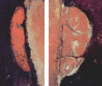 | Other | Nº 291 in D'Atri papers as Raymond - 35.5 x 29 - dated 1916 - provenance in Paul Guillaume ------------------------------------------------------------------------------------------------------------------------------------------------------------------------------------------- Signature of the painting: ------------------------------------------------------------------------------------------------------------------------------------------------------------------------------------------- Detail of the ear where the drawing is clearly visible and is painted over the color (on top of the color) ![]() ------------------------------------------------------------------------------------------------------------------------------------------------------------------------------------------- This is one of those paintings that are extremely rare to see a new image. Usually is said by experts that is Raymond Radiguet portrait, but the painting shows a grown up man, not a boy. Link to the sitter biography The sitter was born in 1903 and this painting is dated by Modigliani in 1915 so the sitter was 12 years?, so I stand for another person not Raymond Radiguet. Biographers say he lived in Val de Marne (close to Paris) until 1917. This is a photo of Radiguet with Cocteau in 1923 (8 years later to the painting): ![]() Radiguet in 1921-22: Radiguet in 1921: Radiguet by Picasso in 1920: There are other 2 portraits attributed to Modigliani of Radiguet: ![]() Raymond dated in 1915 ![]() Raymond dated in 1910 -1915 ? Some experts even mention the silly thing that Radiguet shared the love of Hastings with Modigliani and that his novel "the devil in the flesh" was related to that situation. Nonsense: 1.- Hastings was not married to Modigliani 2.- Hastings was long divorced 3.- Radiguet was 12? 4.- Hastings was far from the sinner affection reflected in the novel. |