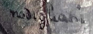 | Signature: | Signed "modigliani" bottom right - text "Madam / Pompadour / 1915" center left | ||||||||||||||||||||||||